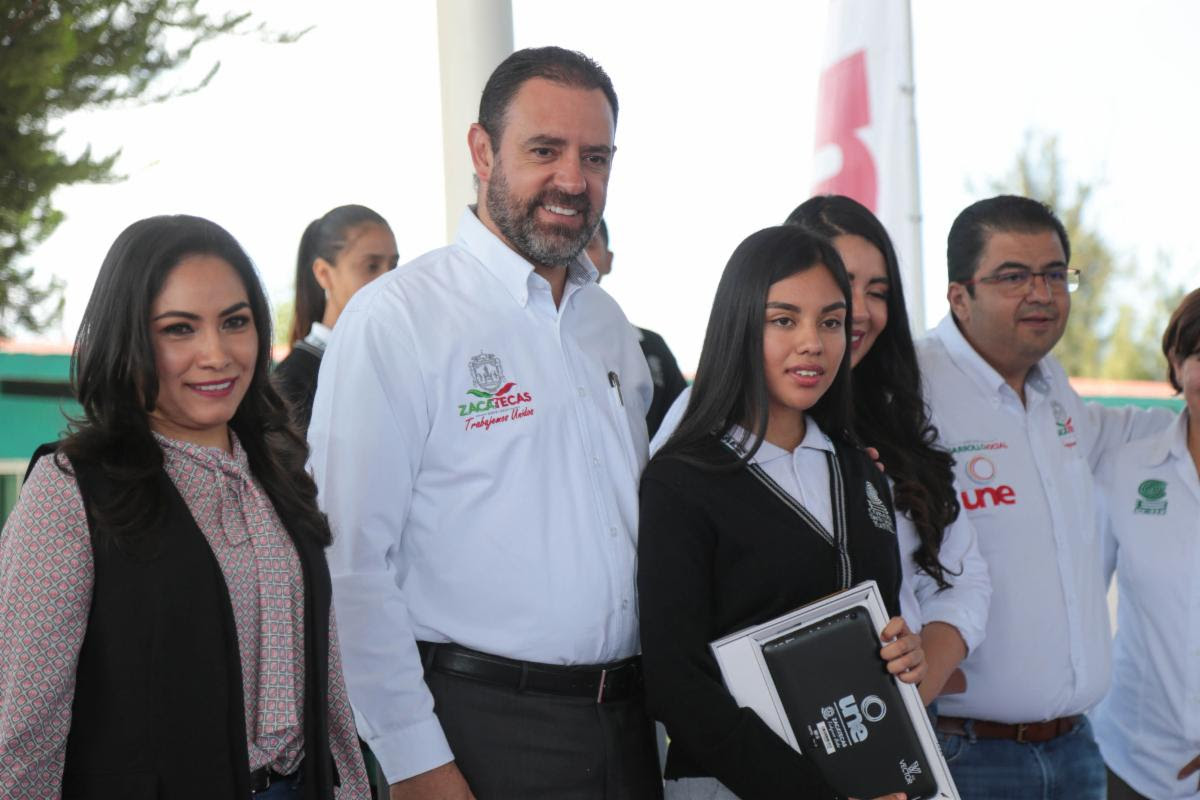 La primera acción de la gira correspondió al arranque del programa Biblioteca Digital, que consiste en la entrega de 312 tabletas electrónicas cargadas con archivos y herramientas educativas, para beneficio del mismo número de estudiantes del Colegio de Bachilleres de Noria de Ángeles.