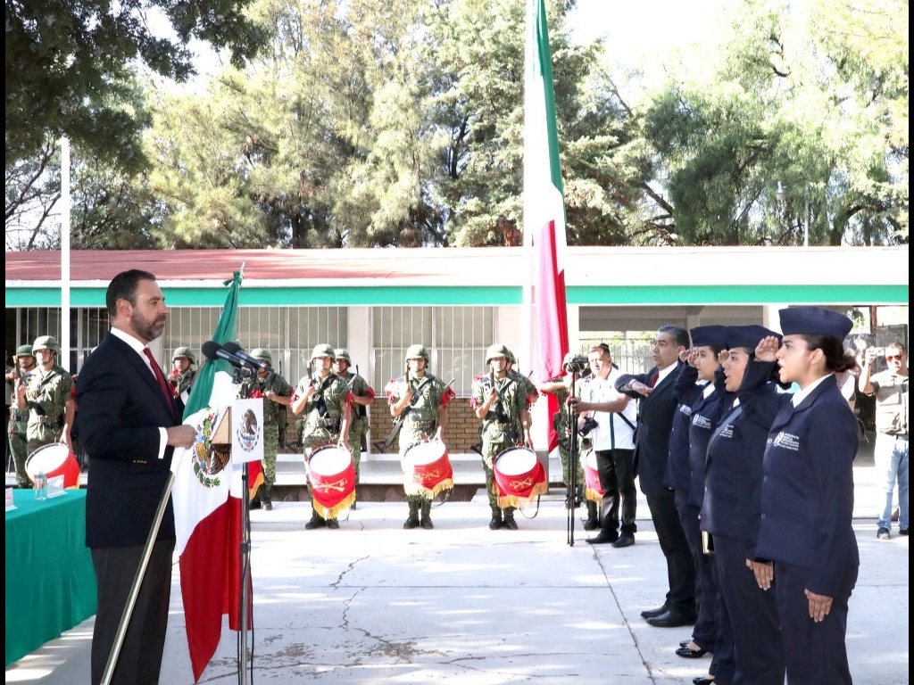 El gobernador Alejandro Tello encabezó el abanderamiento de la primera generación del Bachillerato General Militarizado Gral. Pánfilo Natera, que este día inició las actividades correspondientes al presente ciclo escolar.