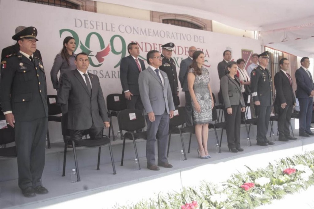 ZACATECAS, ZAC.- En representación del Gobernador Alejandro Tello, la Secretaria de Educación, Gema Mercado Sánchez, presidió el Desfile Cívico Militar que se realiza con motivo del 209 Aniversario del inicio de la Independencia de México.