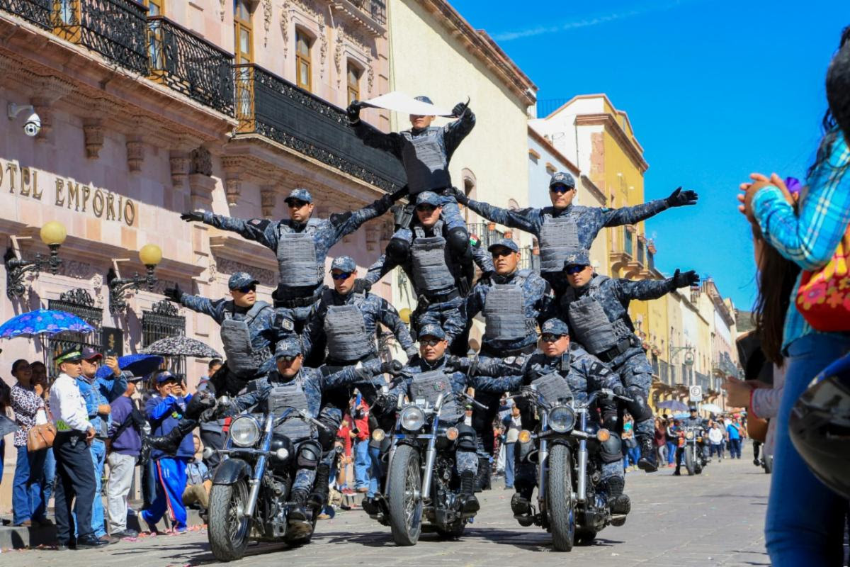 Con un colorido transitar de los contingentes, se dio paso a la Banda Sinfónica del Estado, escoltas, bandas de guerra, instituciones educativas, de seguridad pública, dependencias de gobierno, así como de la asociación de charros.