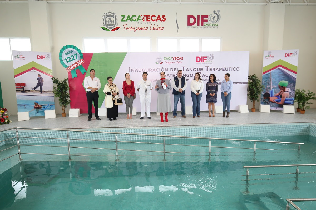 TLALTENANGO DE SÁNCHEZ ROMÁN. La Presidenta Honorífica del Sistema Estatal para el Desarrollo Integral de la Familia (SEDIF), Cristina Rodríguez de Tello inauguró el tanque terapéutico de Tlaltenango, que rá atención a personas con discapacidad de ese municipio y de otros aledaños como Momax, Tepechitlán, Teúl de González Ortega, Santa María de la Paz, entre otros.