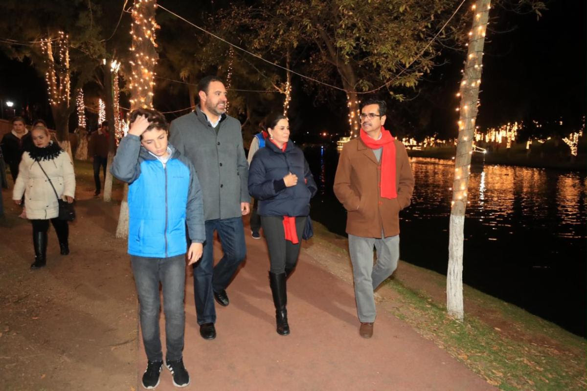 El Gobernador Alejandro Tello y la Presidenta Honorífica del Sistema Estatal DIF, Cristina Rodríguez, abrieron este nuevo producto turístico navideño, al ofrecer al público la atractiva rueda de la fortuna, instalada en este parque, donde además existen exhibiciones sin costo de cine familiar en el Foro del Lago.