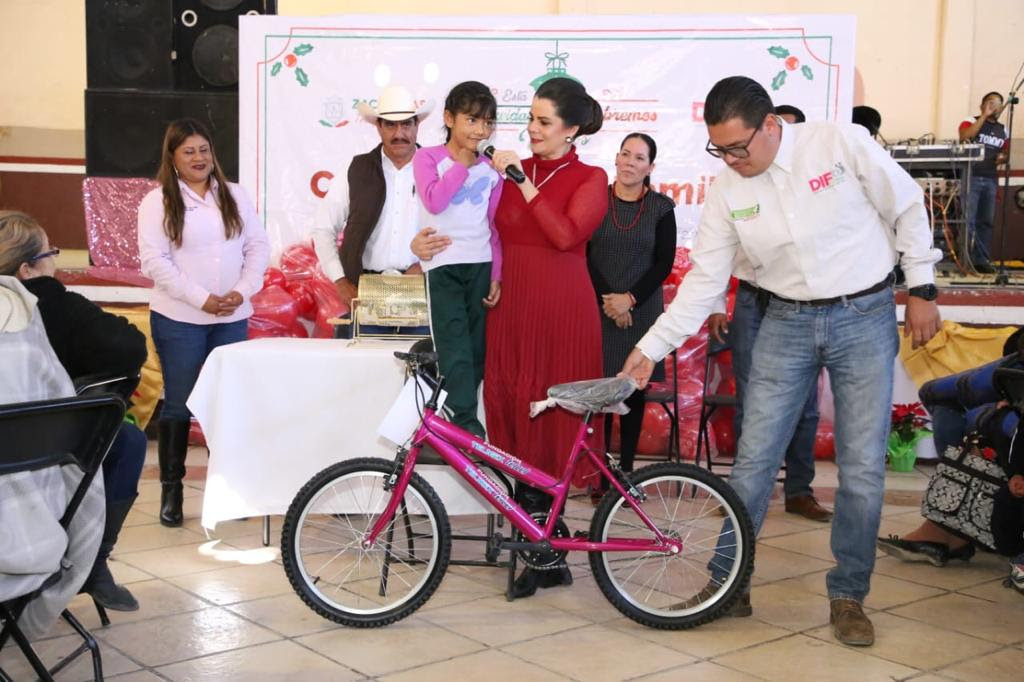 A nombre del Gobernador Alejandro Tello, también rifó algunas bicicletas como regalo de navidad para las y los niños, y llevo a todas las personas un mensaje de alegría, paz y armonía no solamente para las fiestas de fin de año, sino durante toda su vida.