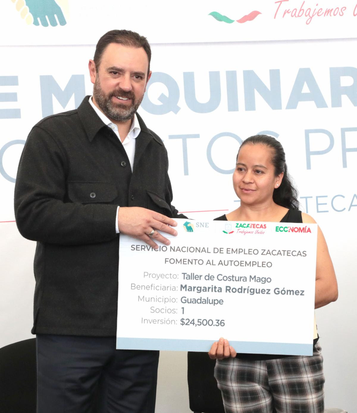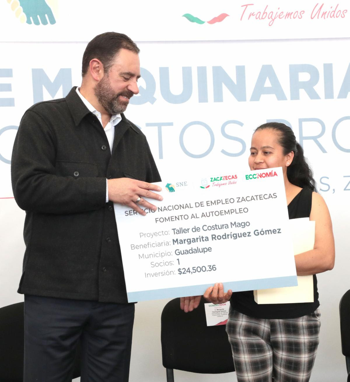 ZACATECAS.- El Gobierno de Alejandro Tello superó la meta quinquenal del programa Fomento al Autoempleo, luego de alcanzar un total de 1 mil 135 apoyos para micro negocios, contra una expectativa de 1 mil acciones de entrega de maquinaria.
