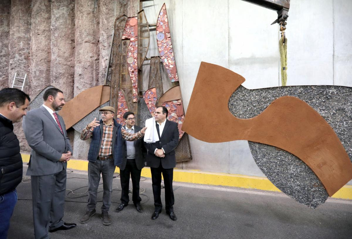 ZACATECAS. El artista plástico Alfonso López Monreal recibió al Gobernador Alejandro Tello con el fin de presentarle el comienzo de la instalación de su nuevo mural “Arroyo Pétreo”, que se encontrará sobre el paso a desnivel de la Avenida Pedro Coronel, en el cruce con Avenida México.