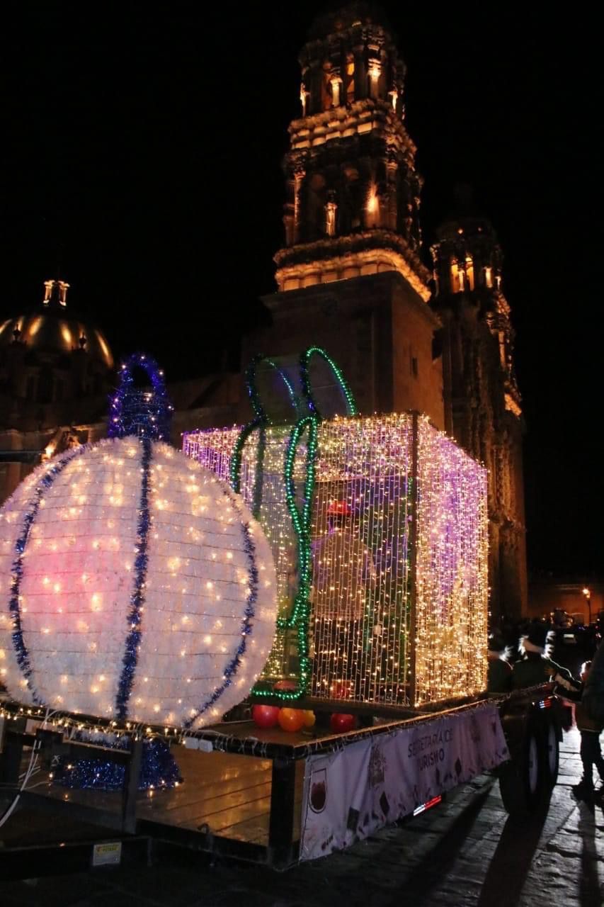 Con inicio en la explanada de la Máquina 30-30, pasando por las avenidas González Ortega e Hidalgo, decenas de carros alegóricos llenaron de luces y sonidos el Centro Histórico de Zacatecas, y sus tripulantes saludaron y arrojaron dulces a las y los niños, acompañados por sus familias.