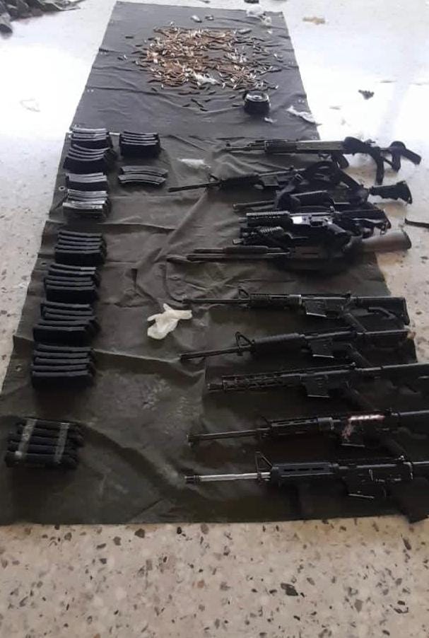 Los operativos llevados a cabo en la comunidad Carbonerilla, del municipio referido, permitieron asegurar 11 armas de fuego largas, así como 44 cargadores, 710 cartuchos de diferentes calibres, cuatro vehículos que corresponden a una camioneta Ford F-150, una Chevrolet Silverado, una GMC Sierra y un automóvil Nissan Sentra.