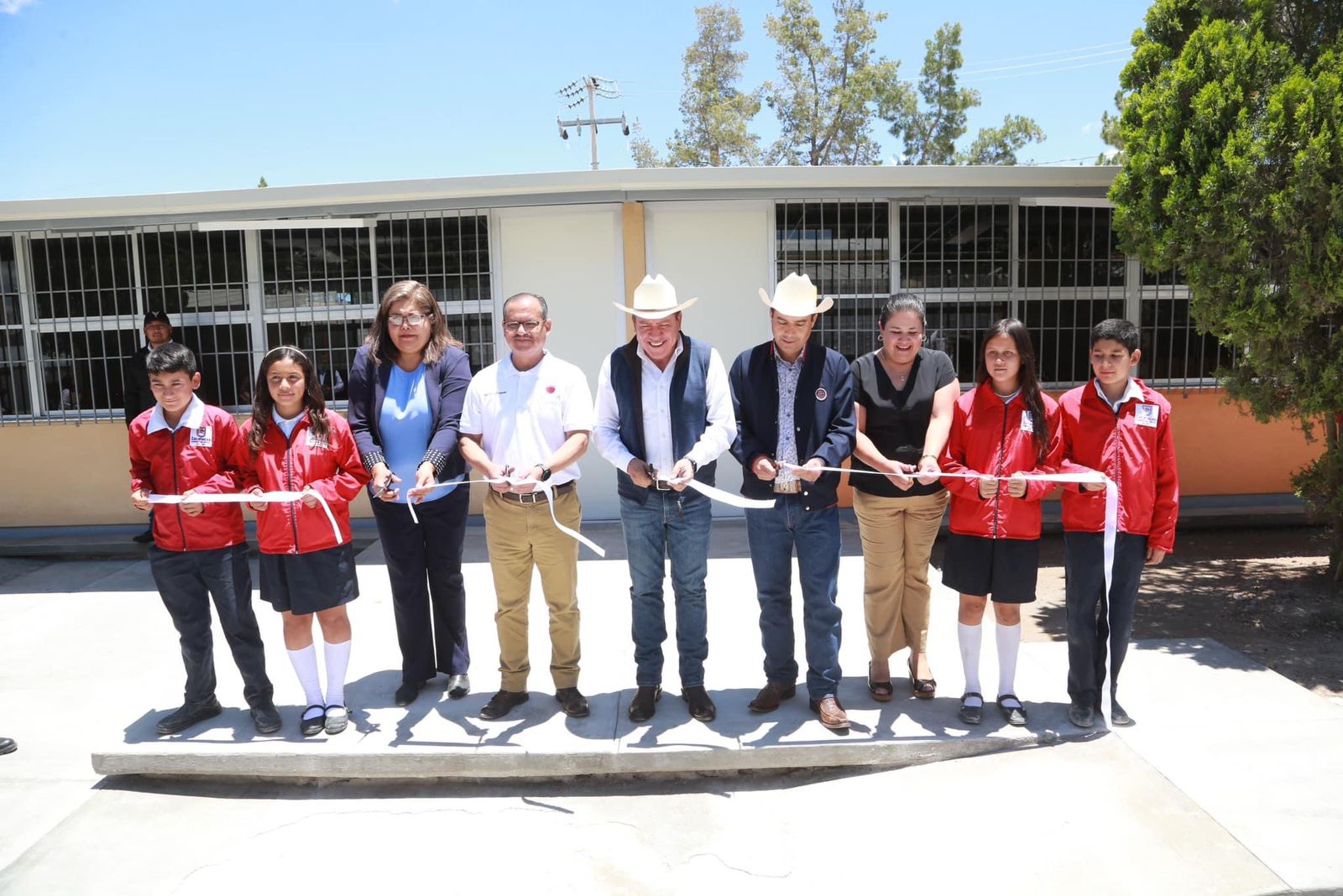 Más temprano, el Gobernador se reunió con maestras, maestros y estudiantes de la Primaria Josefa Ortiz de Domínguez, a quienes entregó el mejoramiento de tres aulas y de una bodega, además de adecuaciones a la fachada principal, entre ellas, la colocación de nueva pintura.