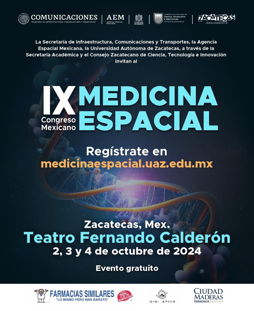 El Gobierno del Estado, encabezado por el mandatario David Monreal Ávila, se prepara para recibir el IX Congreso Mexicano de Medicina Espacial, que se llevará a cabo del 2 al 4 de octubre, en el Teatro Fernando Calderón y el CREDES Zacatecas (Quantum Ciudad del Conocimiento).