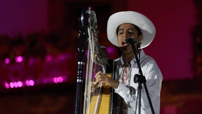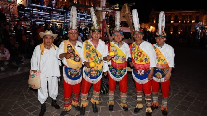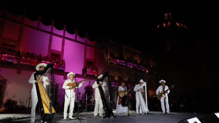Mientras, los voladores de Papantla hicieron una demostración en Plaza de Armas, para dar paso a un concierto de música tradicional de Veracruz.
