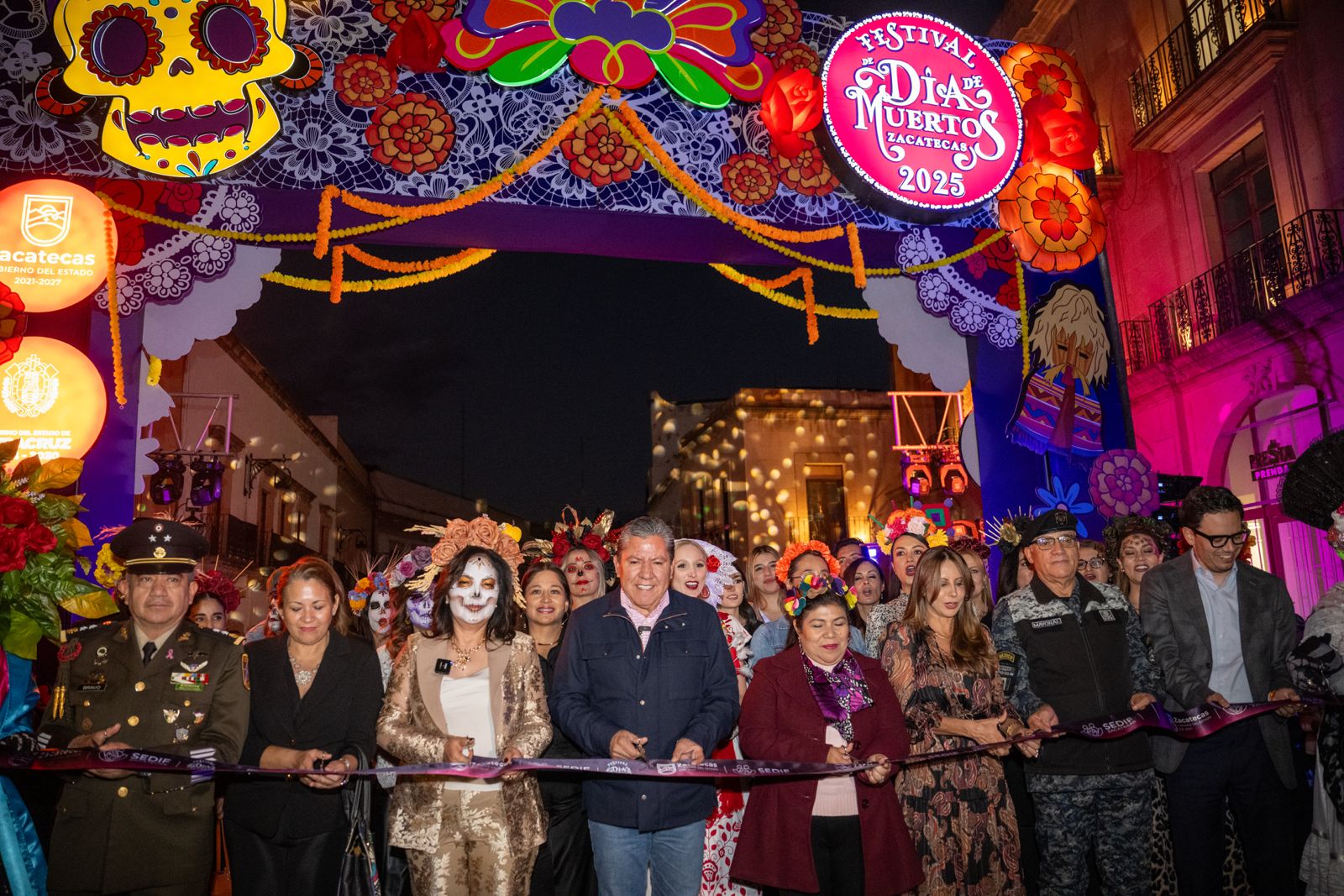 Acompañado por la Presidenta del Sistema Estatal para el Desarrollo Integral de la Familia (SEDIF), Sara Hernández, y la Secretaria de Cultura de Veracruz, Xóchitl Molina González, el Gobernador David Monreal Ávila encabezó el corte del listón y el recorrido inaugural de la decoración de arcos, fachadas y espacios del Centro Histórico, además de un homenaje a personajes zacatecanos de la vida cotidiana.