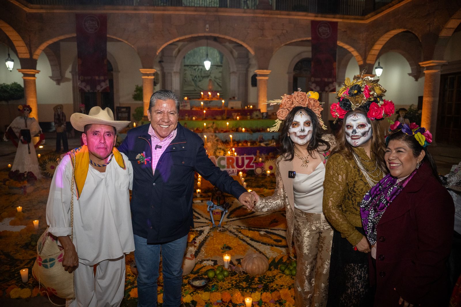 En Palacio de Gobierno, la Secretaria de Cultura de Veracruz, Xóchitl Molina, explicó el gran altar instalado en el recinto, que se convierte en un puente hacia el Mictlán, ofreciendo a los seres queridos todo lo que disfrutaban cuando estaban con nosotros; el sentimiento de pérdida se transforma en una vibración de vida: “vivimos la vida de ellos”, reconociendo que sus recuerdos y memorias “siguen estando en nuestro corazón, en nuestra alma, en nuestro espíritu”.