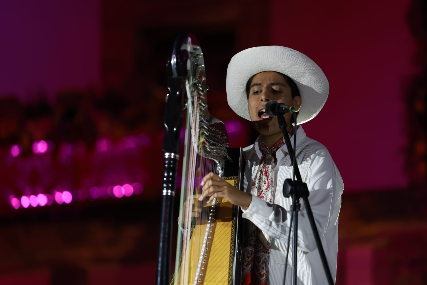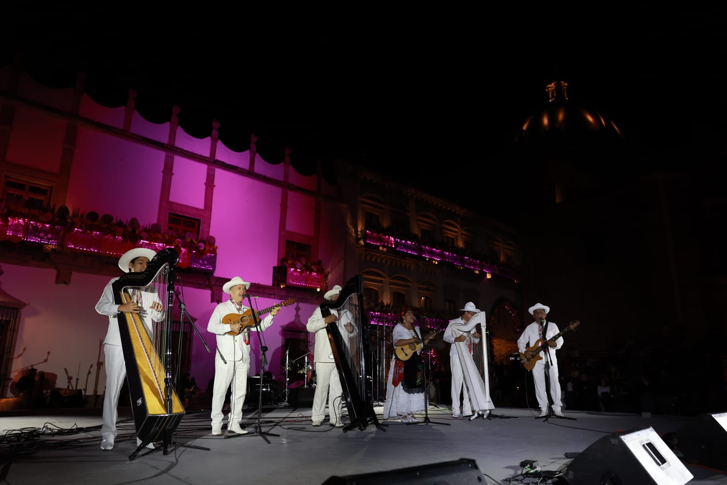 Mientras, los voladores de Papantla hicieron una demostración en Plaza de Armas, para dar paso a un concierto de música tradicional de Veracruz.