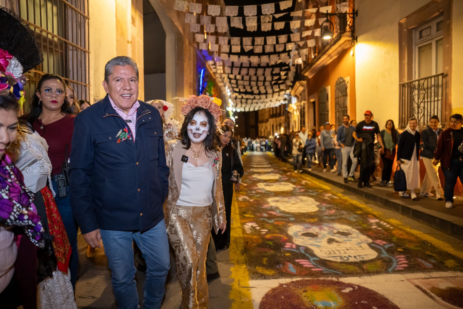 Acompañado por la Presidenta del Sistema Estatal para el Desarrollo Integral de la Familia (SEDIF), Sara Hernández, y la Secretaria de Cultura de Veracruz, Xóchitl Molina González, el Gobernador David Monreal Ávila encabezó el corte del listón y el recorrido inaugural de la decoración de arcos, fachadas y espacios del Centro Histórico, además de un homenaje a personajes zacatecanos de la vida cotidiana.