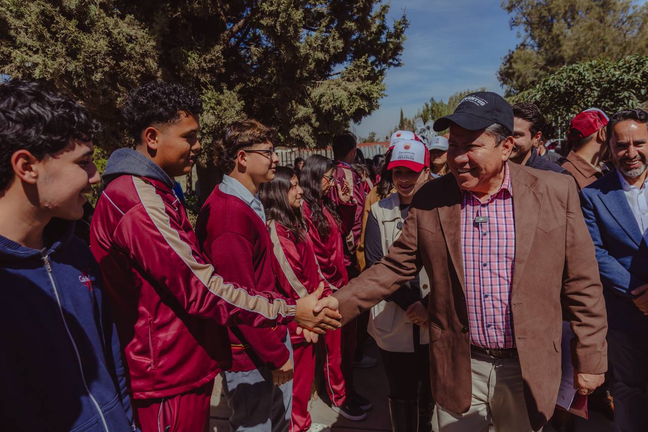 A través del programa Transformando Espacios para las Juventudes, el Gobernador David Monreal Ávila inauguró la obra de rehabilitación y equipamiento de la cancha de futbol rápido en el CECYTEZ Plantel Calera, como parte de las acciones de la Agenda del Año del Progreso 2026.